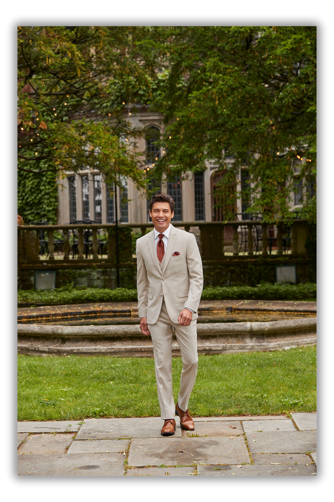 First, call us to schedule an appointment to come in to the shop for a consultation to choose your suit and talk about options